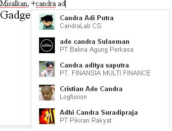saat kita ingin menambahkan circle atau google+ user, cukup ketik  [+], maka otomatis  muncul list google+ user