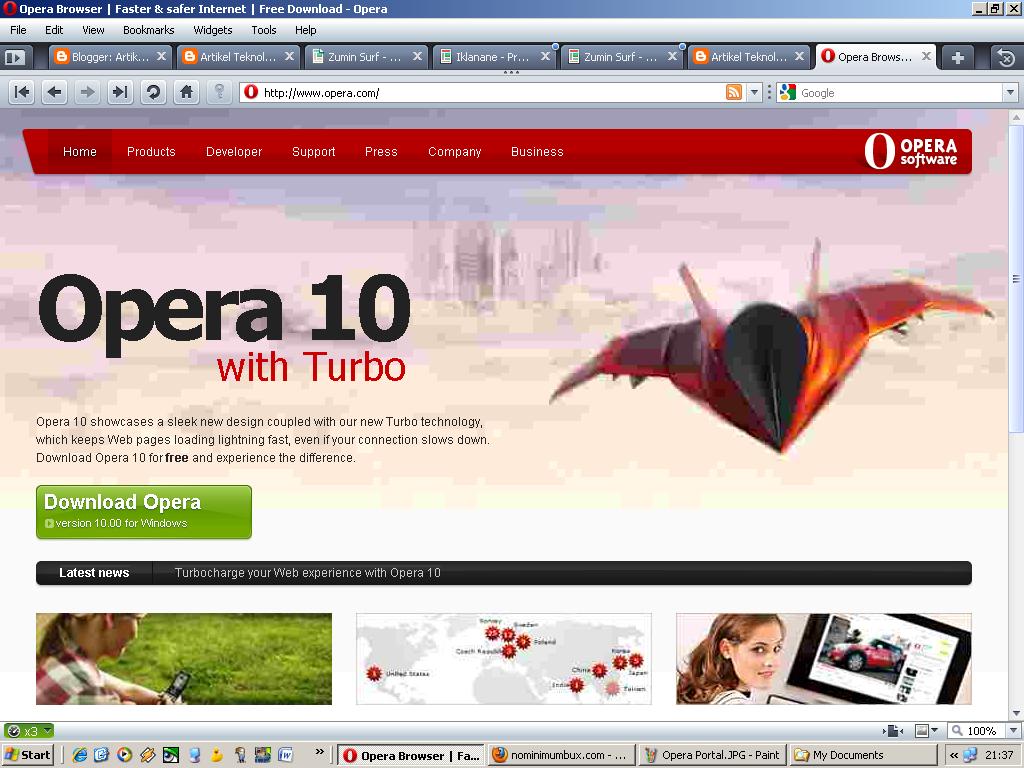 Opera adalah browser favorit saya dari sejak kuliah di tahun 2003 sampai sekitar tahun 2006. Alasan kenapa saya bertahan lama cukup simple, Opera adalah tool All in one untuk berinternet, dari chat client, mail client, RSS reader, plus download manager serta popup blocker yang membuat aplikasi ini cukup nyaman digunakan. Selain itu, browser yang menggunakan multitab belum banyak, boleh di bilang opera adalah pelopornya. Bayangkan jika saya harus membuka IE untuk browsing, Outlook untuk email, MiRC untuk chat dan DAP untuk download managernya, tentunya akan memperlambat sistem secara keseluruhan sekaligus membuat tampilan desktop semrawut.