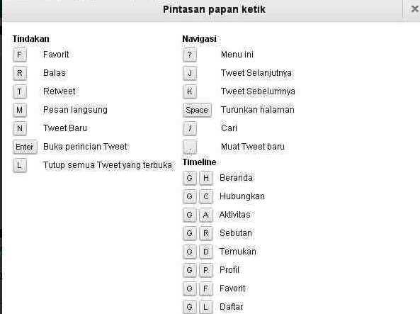 Tombol shortcut di twiter